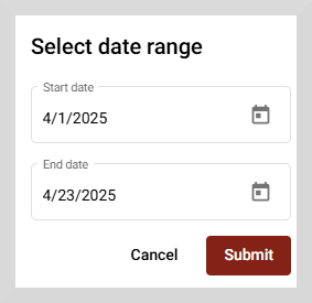 - Click Download Table. A pop-up window appears that allows you to select the time period.